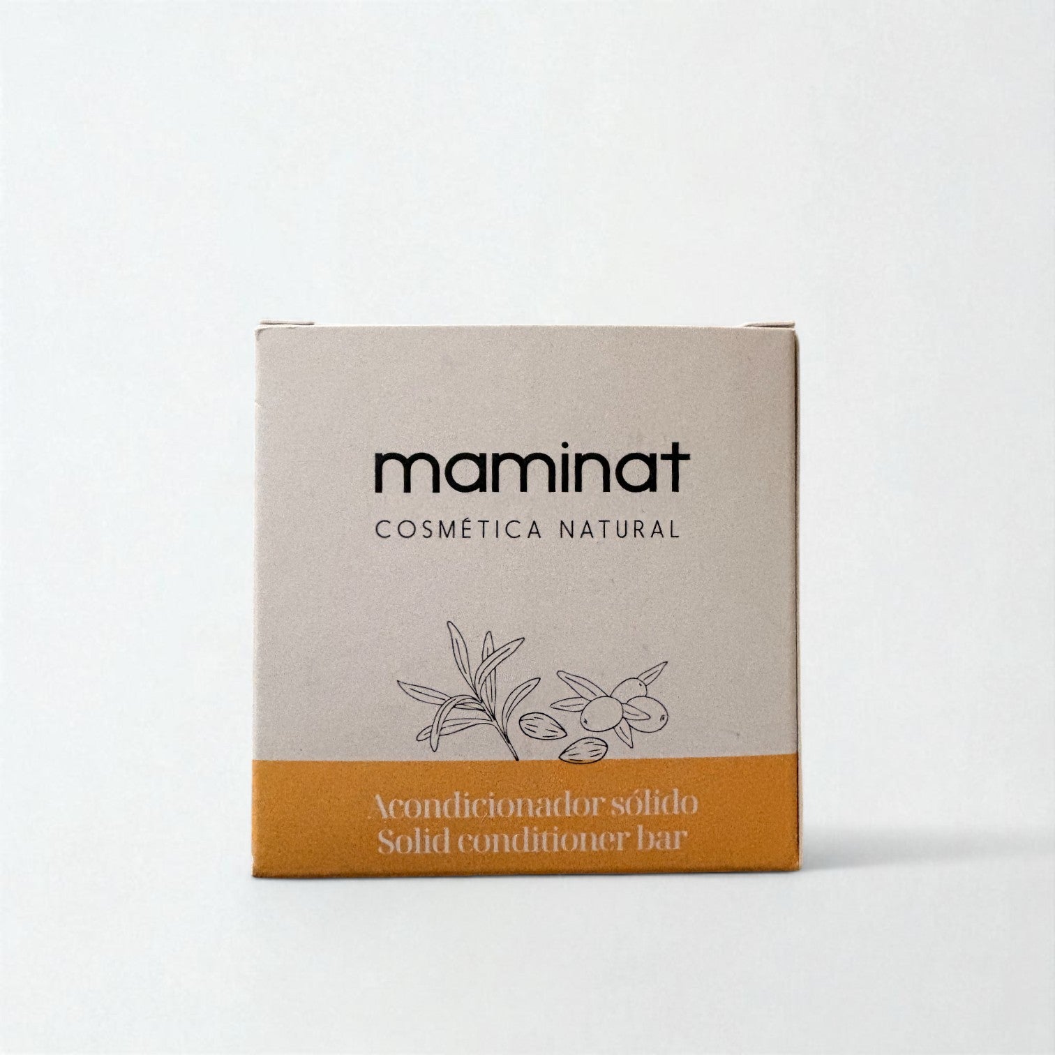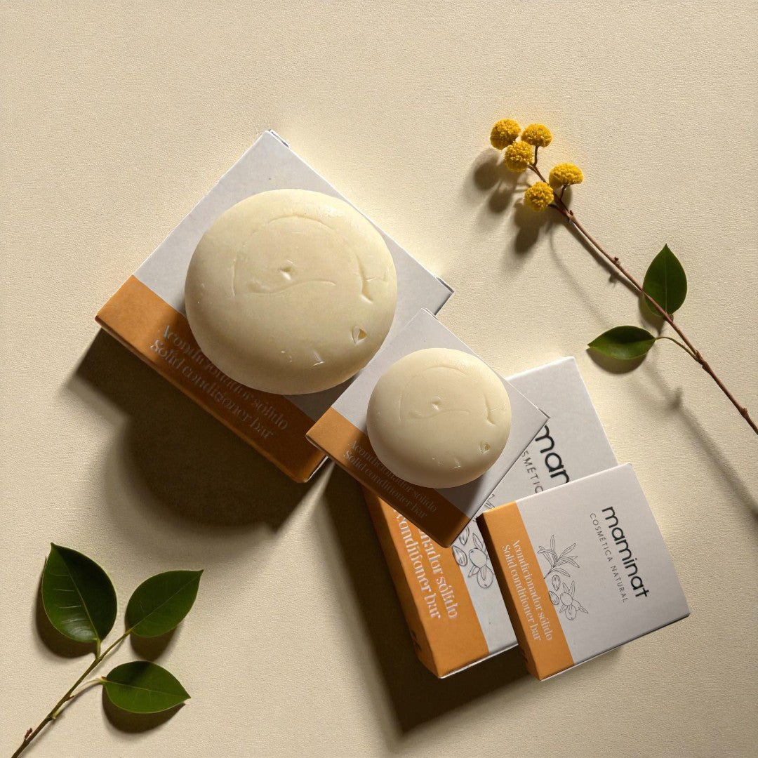 Acondicionador sólido natural que nutre, desenreda y repara con argán, marula, coco y espino amarillo. Aporta brillo, suavidad y controla el encrespamiento.