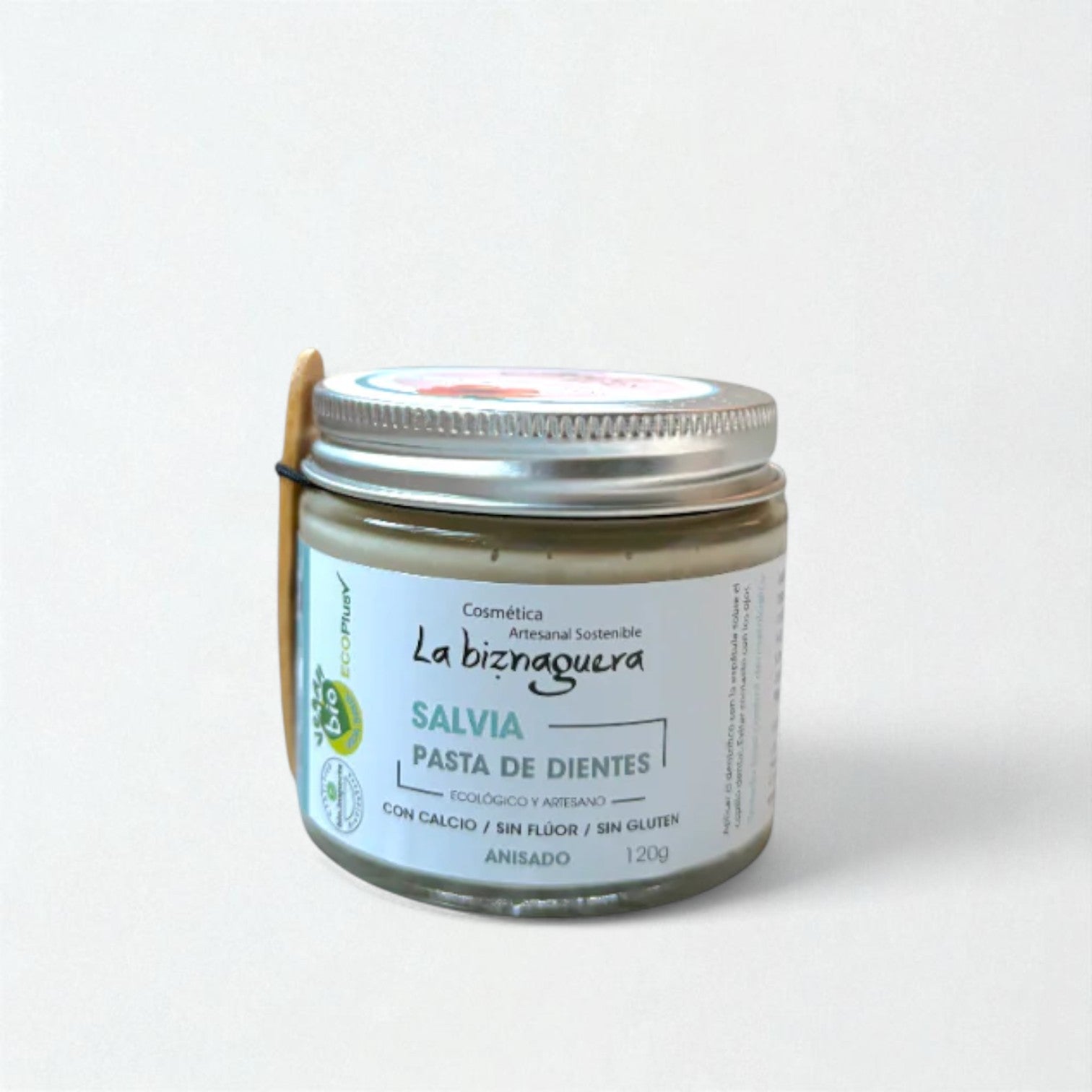 Pasta de dientes natural con salvia, arcilla blanca y aceite de coco, sin flúor ni gluten. Protege las encías, remineraliza y aporta un aliento fresco.