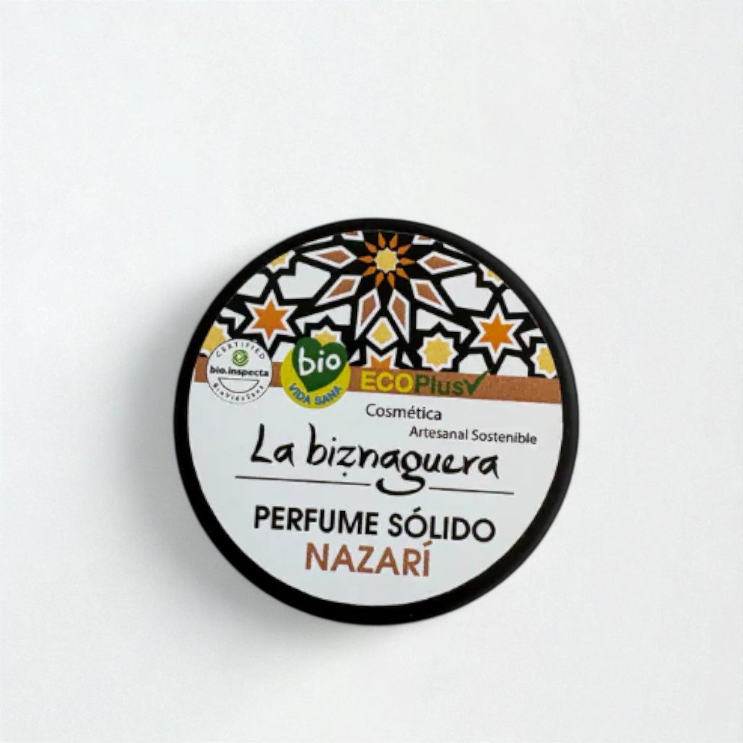 Perfume sólido natural con un aroma cálido y especiado de canela, clavo y naranja. Una fragancia afrodisíaca y envolvente inspirada en el legado nazarí.