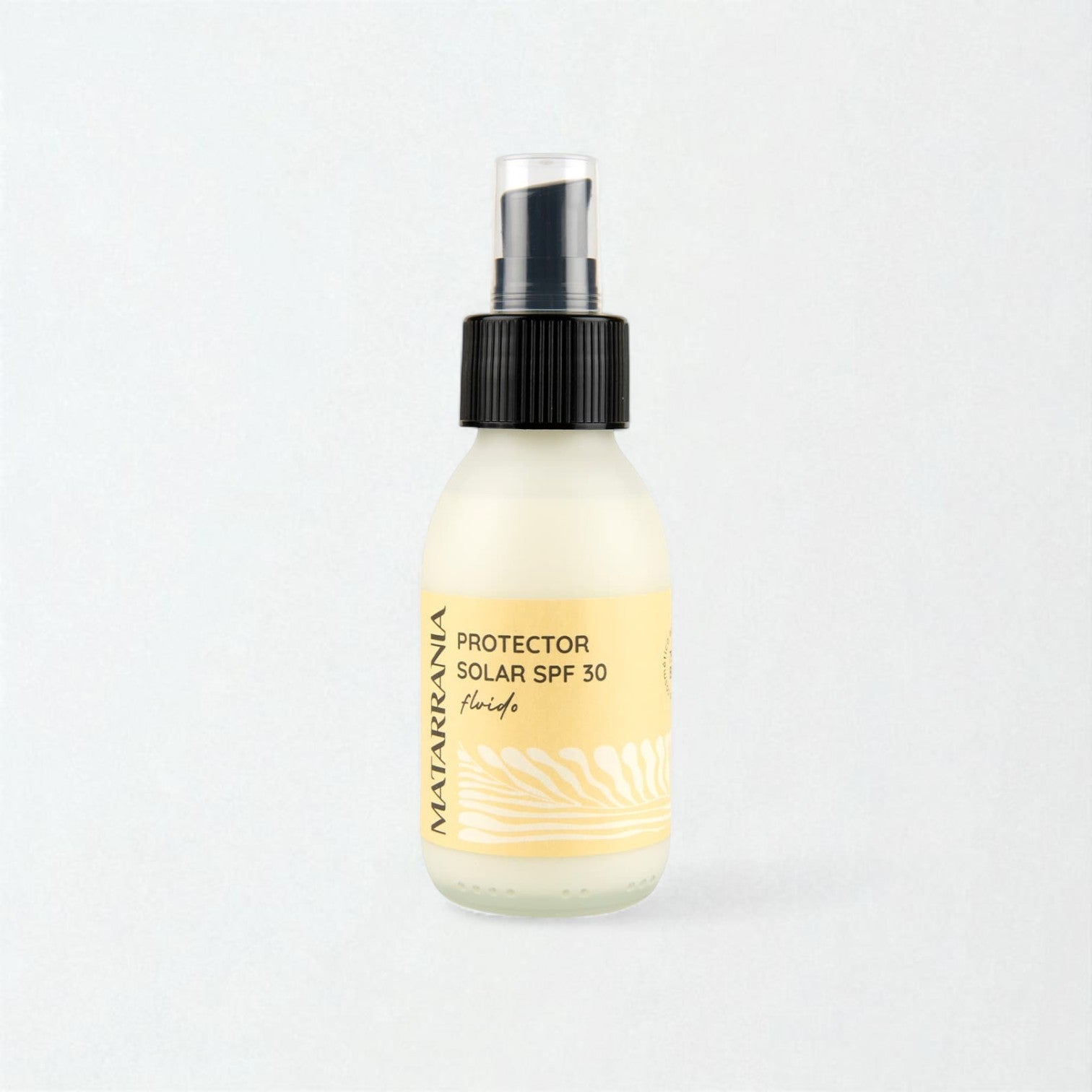 Protector solar fluido SPF 30 con filtros minerales y aceites vegetales. Textura ligera, sin residuo blanco, ideal para toda la familia y pieles sensibles.