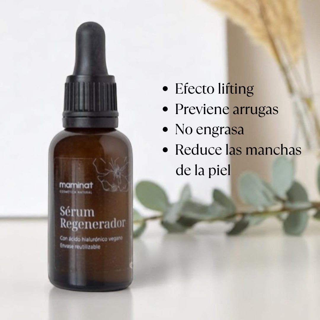 Sérum nocturno regenerador con ácido hialurónico y aceites vegetales. Reafirma, regenera y aporta luminosidad mientras duermes.